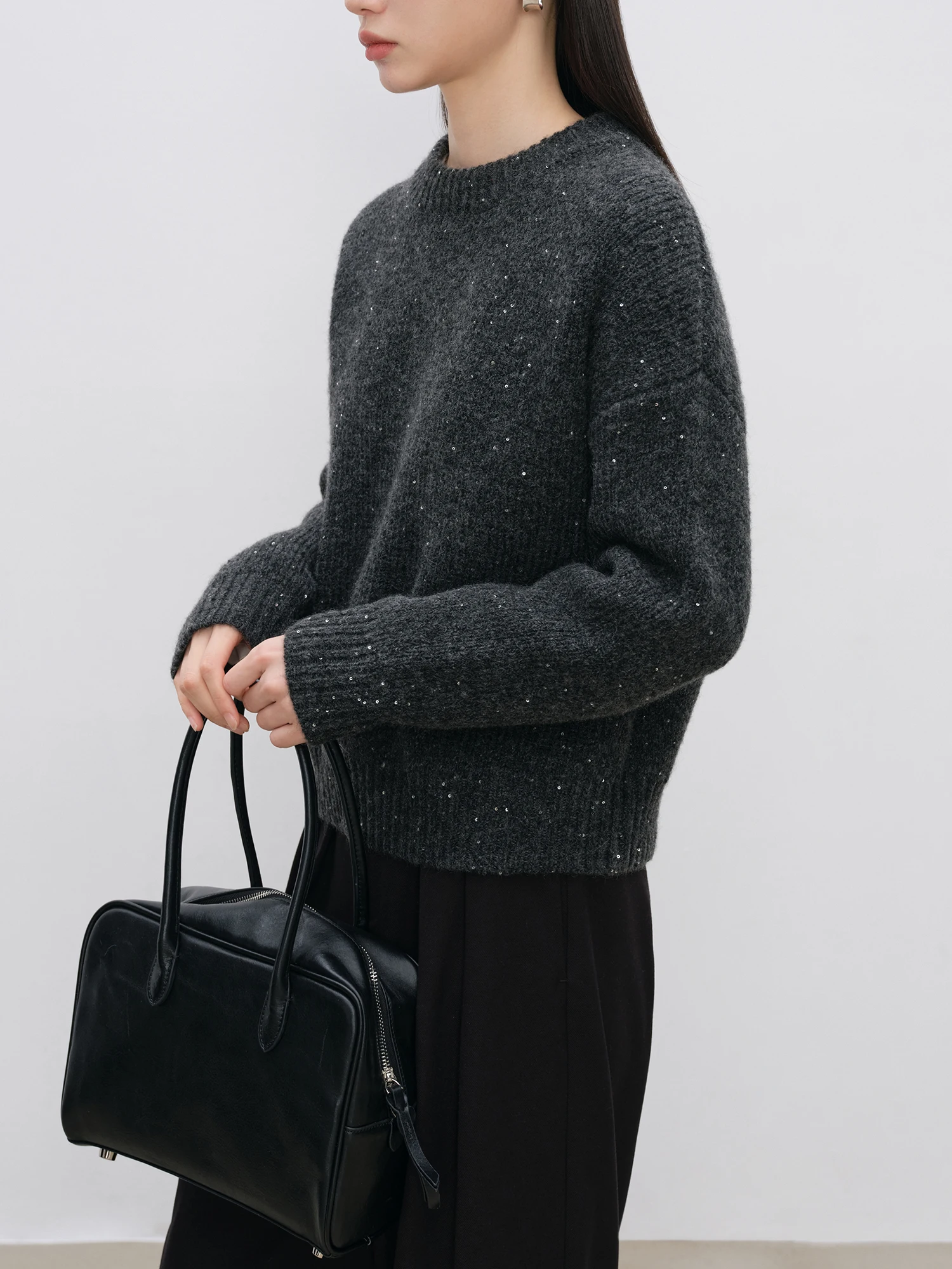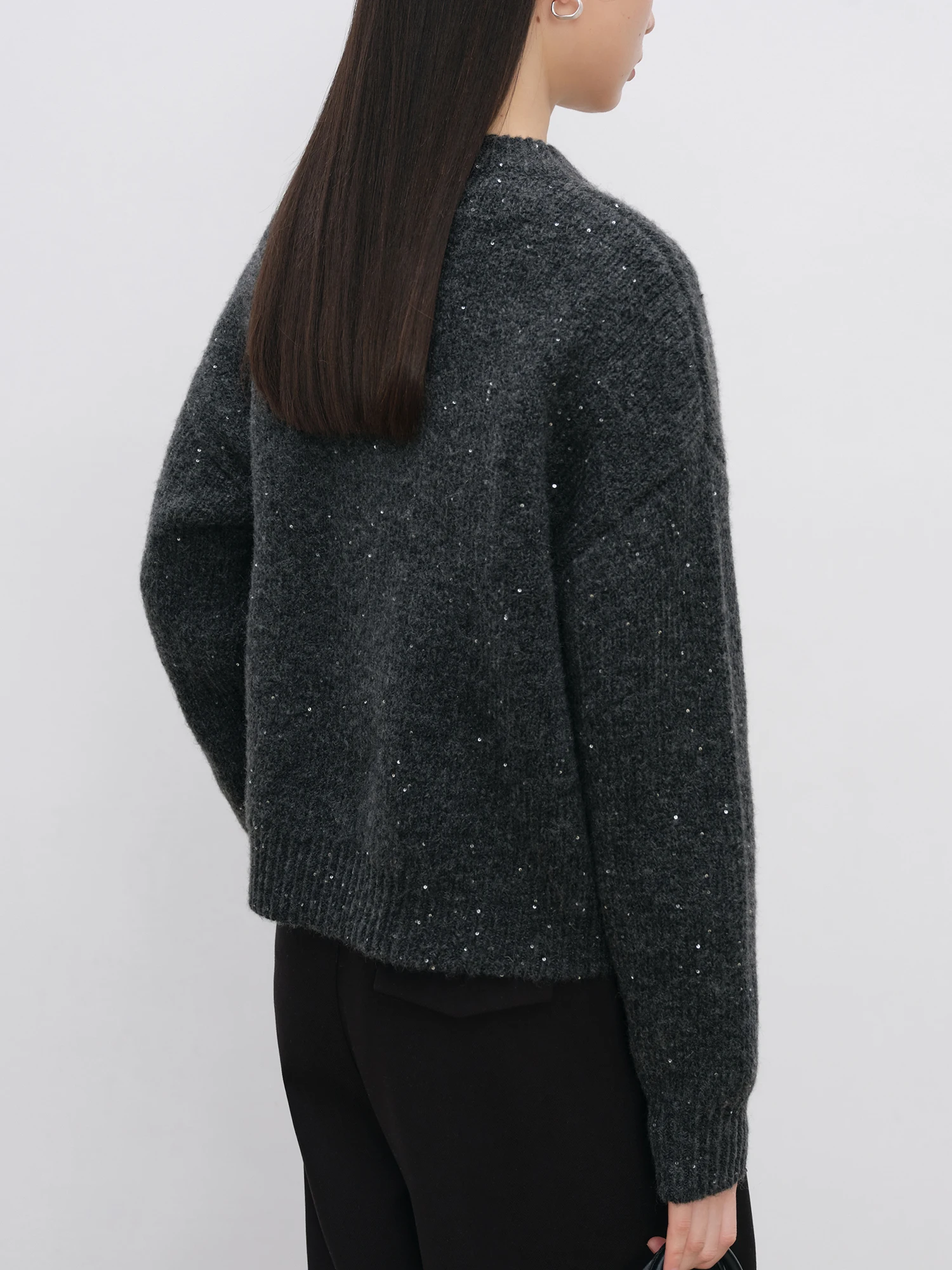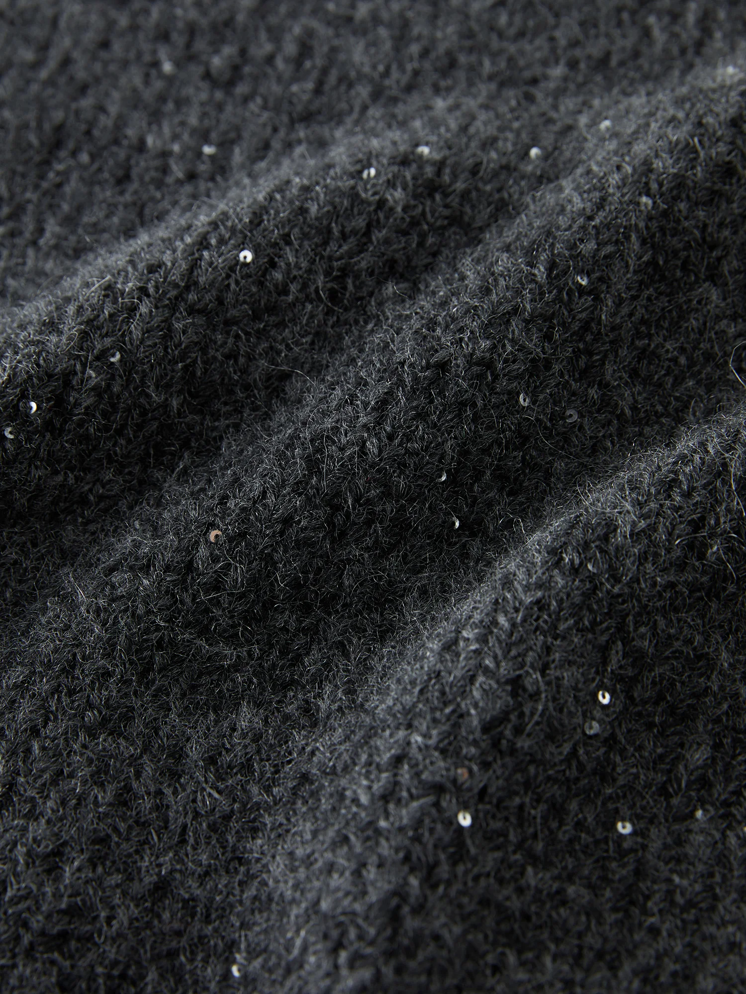 ZIQIAO Petite Size Bead Starry Sky Sweater Women's 2024 Autumn/Winter New Style Lazy Shoulder Sleeve Hoodie Top 24ZQ94145