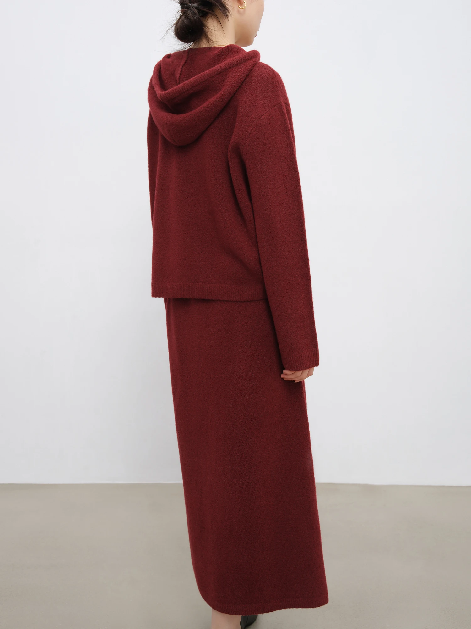 ZIQIAO Petite Size Red Hooded Knitted Sweater Half Skirt Set for Women 2024 Autumn Winter Sweater 24ZQ94237+24ZQ94238
