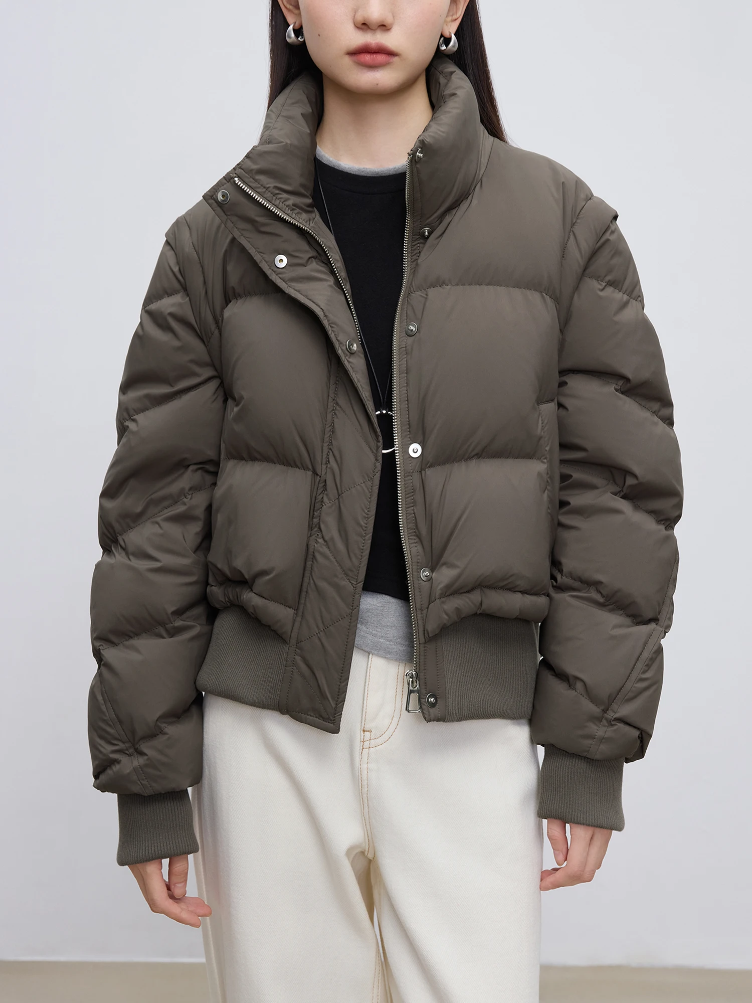 ZIQIAO Petite Size Short Down Jacket for Women 2024 Winter Outfit New Vest Women Casual Loose Brown Jacket 24ZQ94007