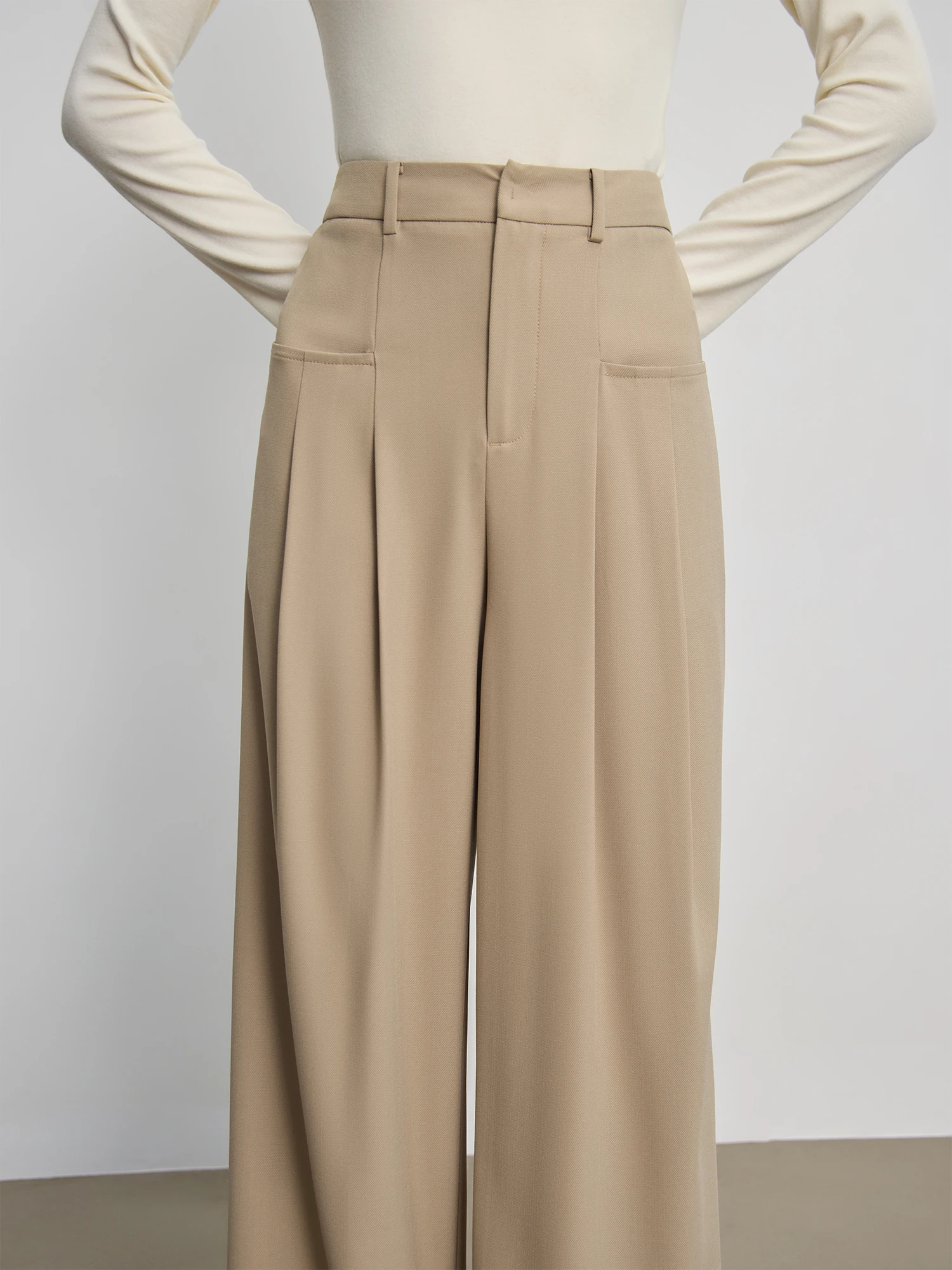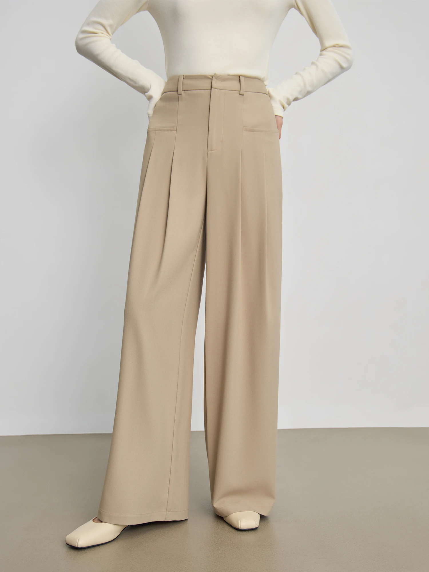 ZIQIAO Petite Size Versatile Wide Leg Casual Pants for Women 2024 New Style Slim Floor Length Pants Crotch Covering Pants
