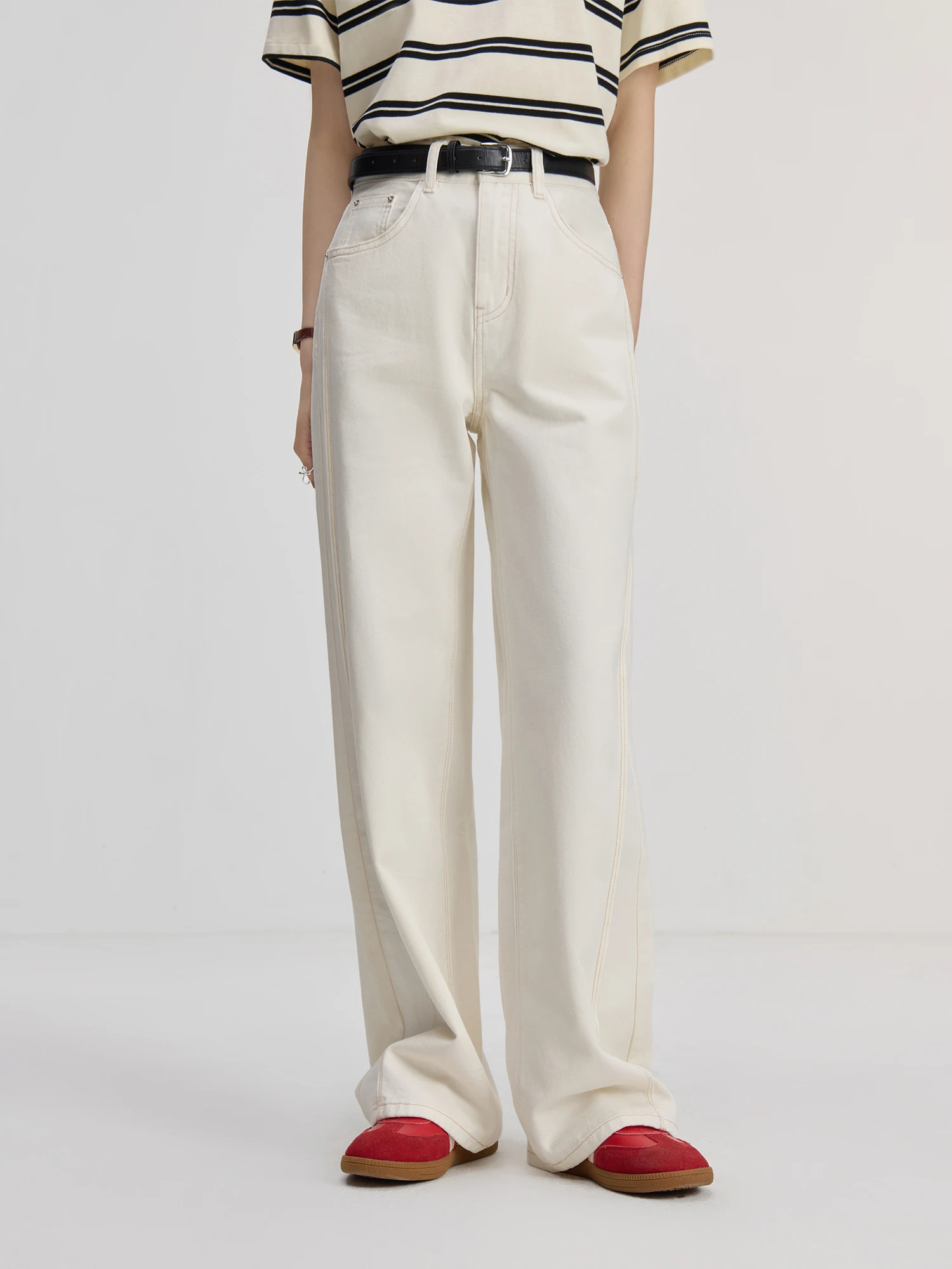ZIQIAO Straight Jeans women 2024 autumn new white mopping pants straight all-match casual blue pants 24ZQ93015