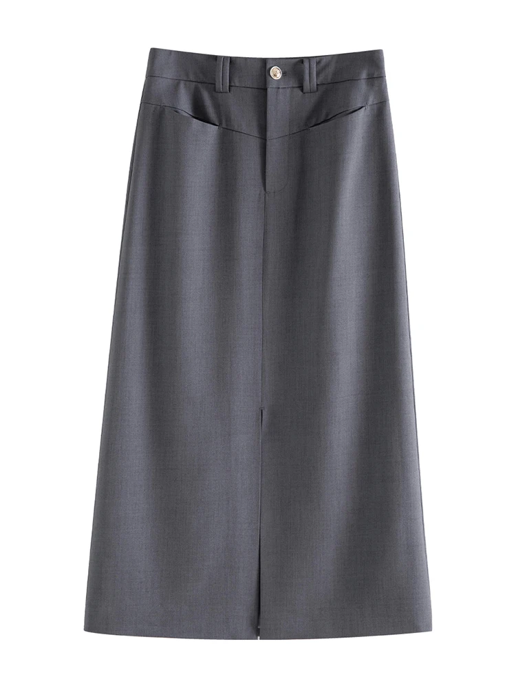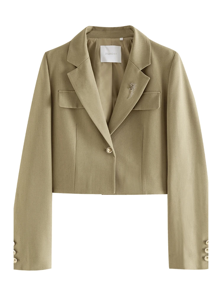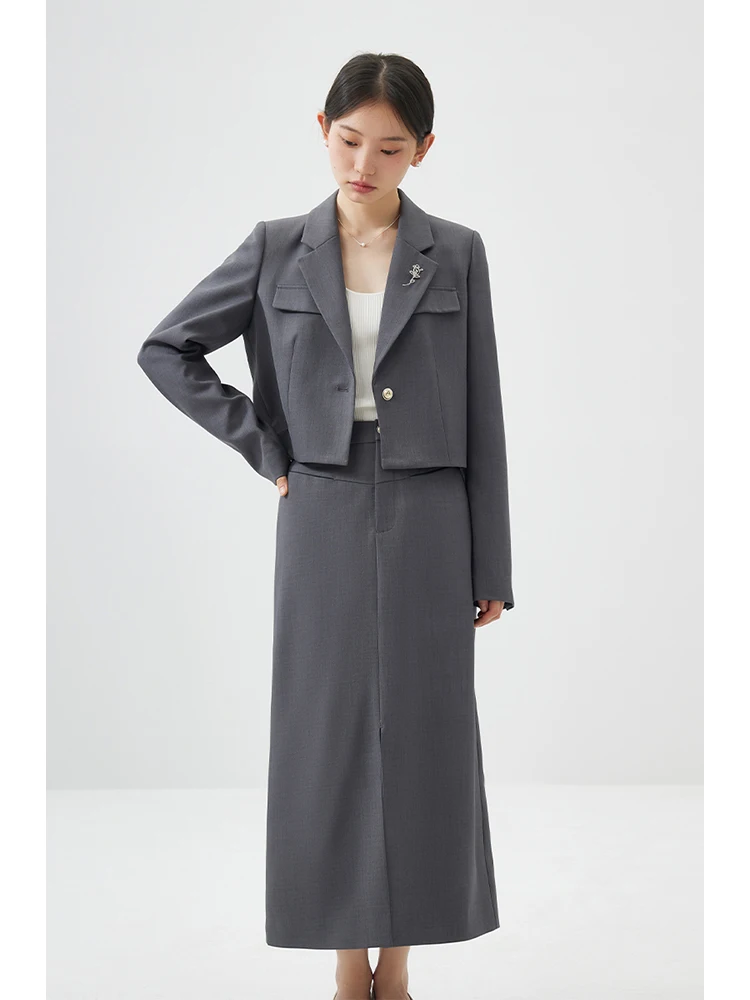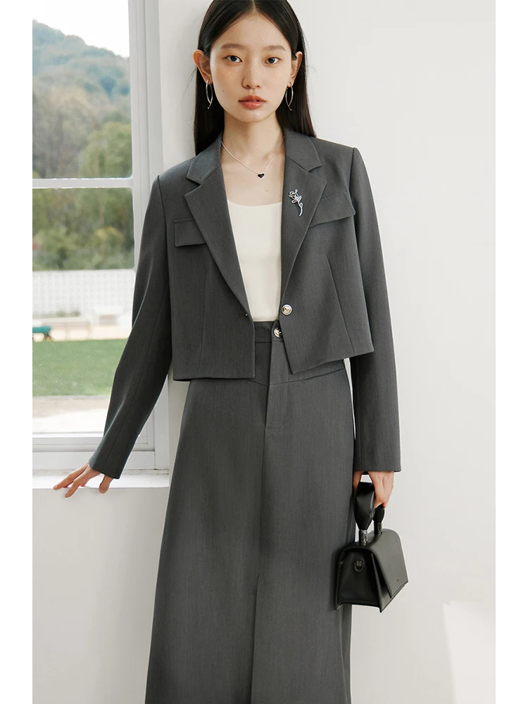 ZIQIAO Temperament One-button Brooch Short Suit for Women Spring Chic Commuter Straight Long Skirt + Short Blazer Jacket Female