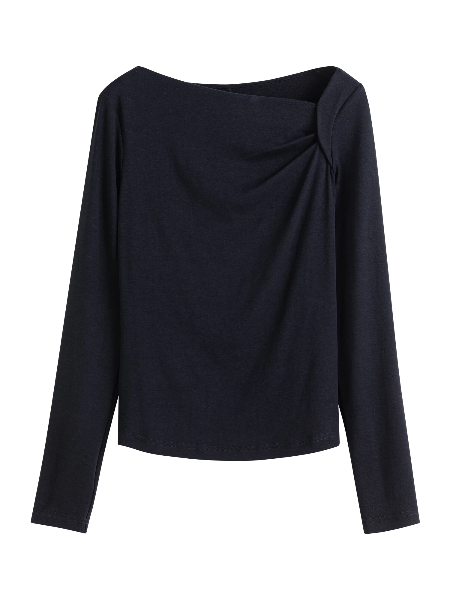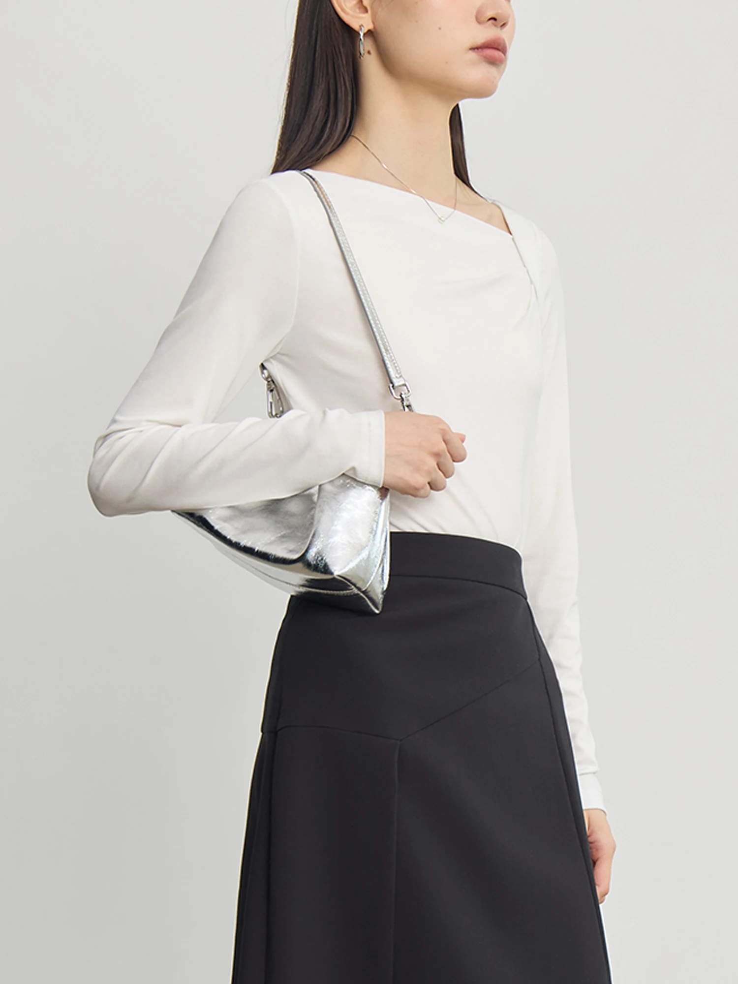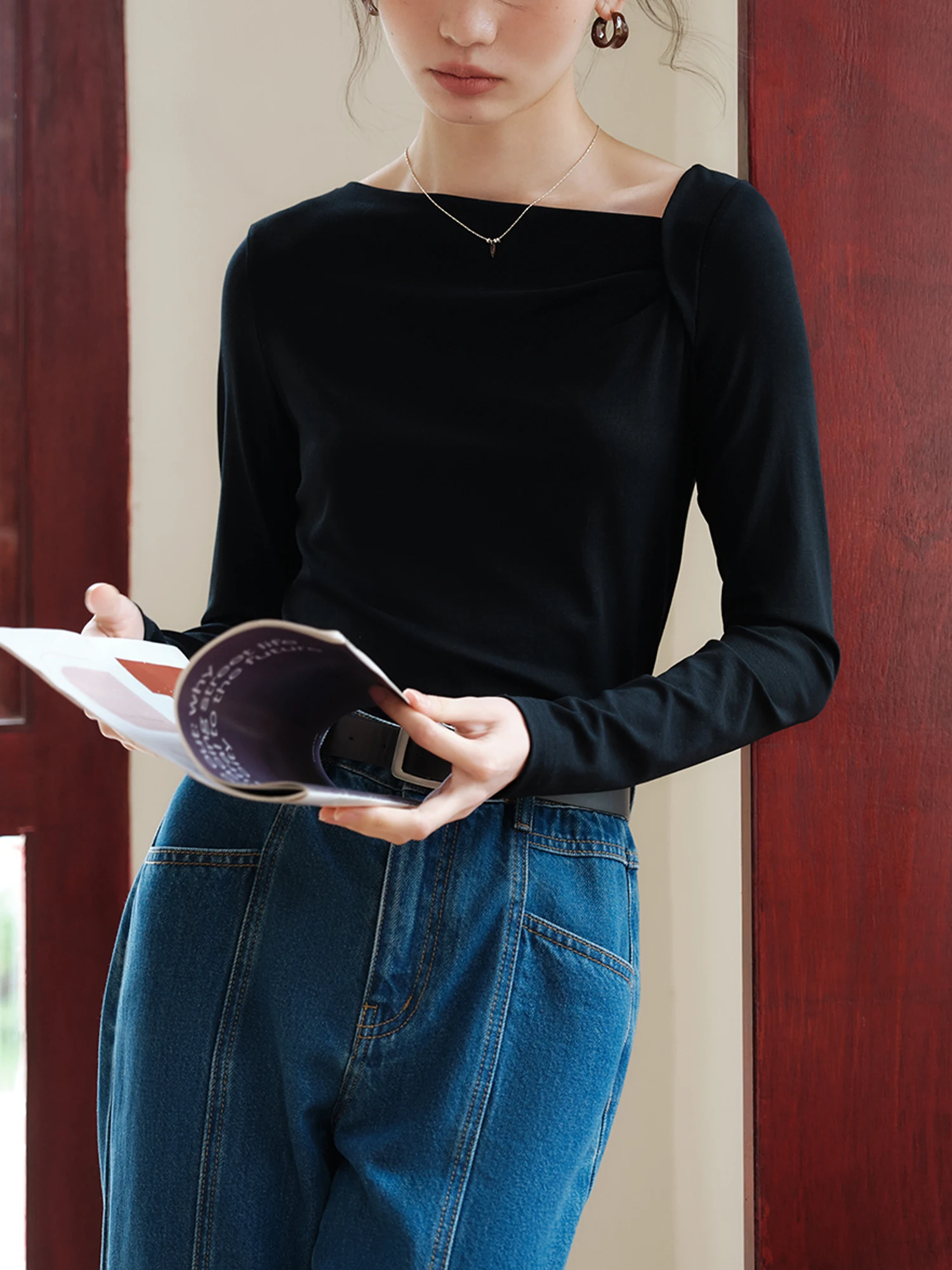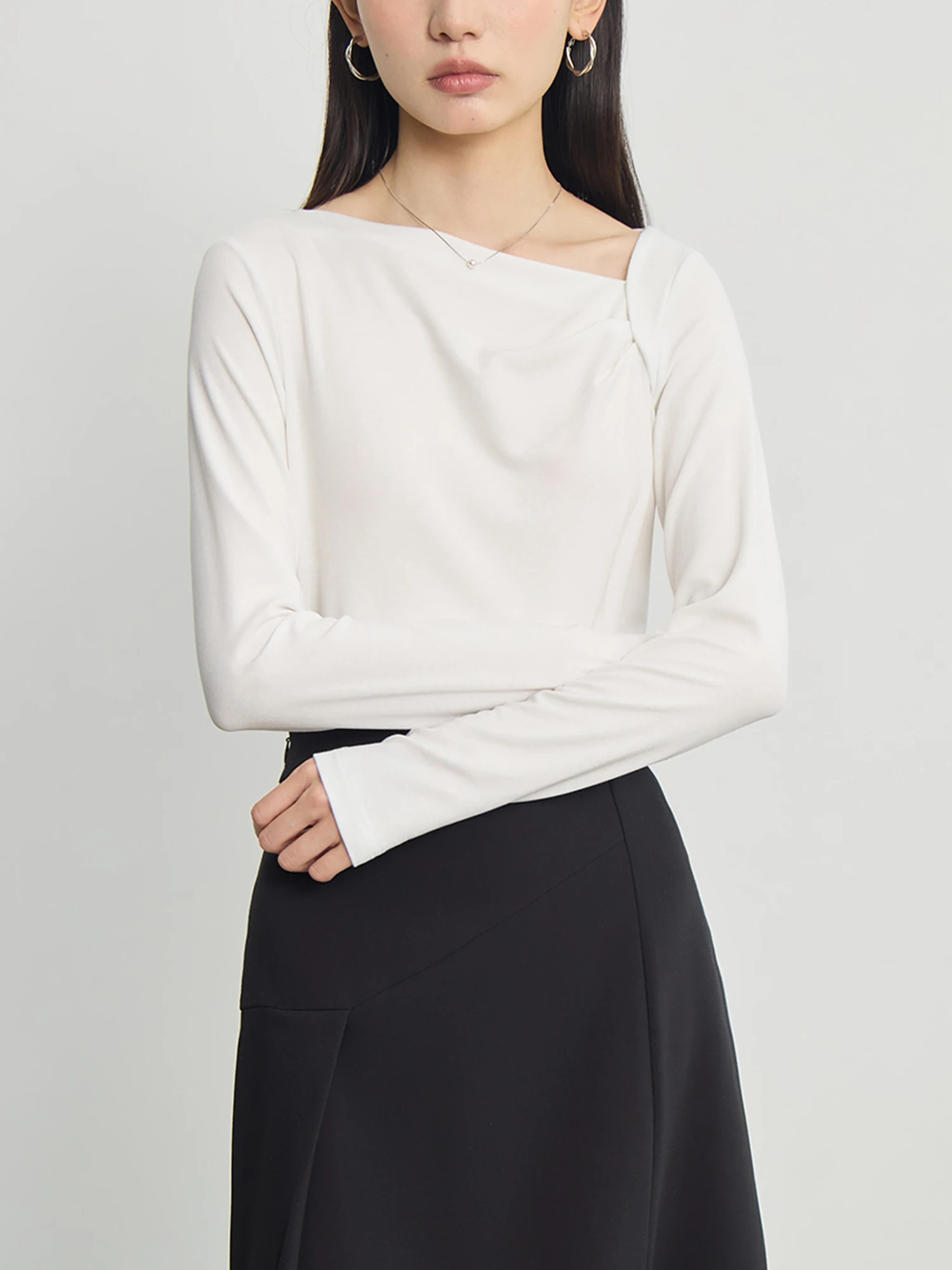 ZIQIAO Tencel Acetate Slim Fit Long-sleeved T-shirt For Women 2024 Autumn New Design Versatile Casual Solid Color Tops 24ZQ93095