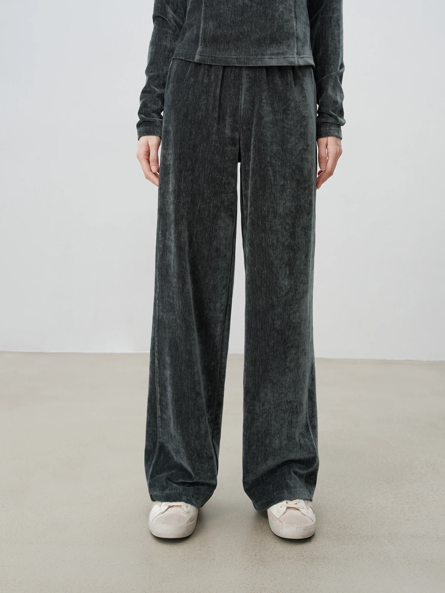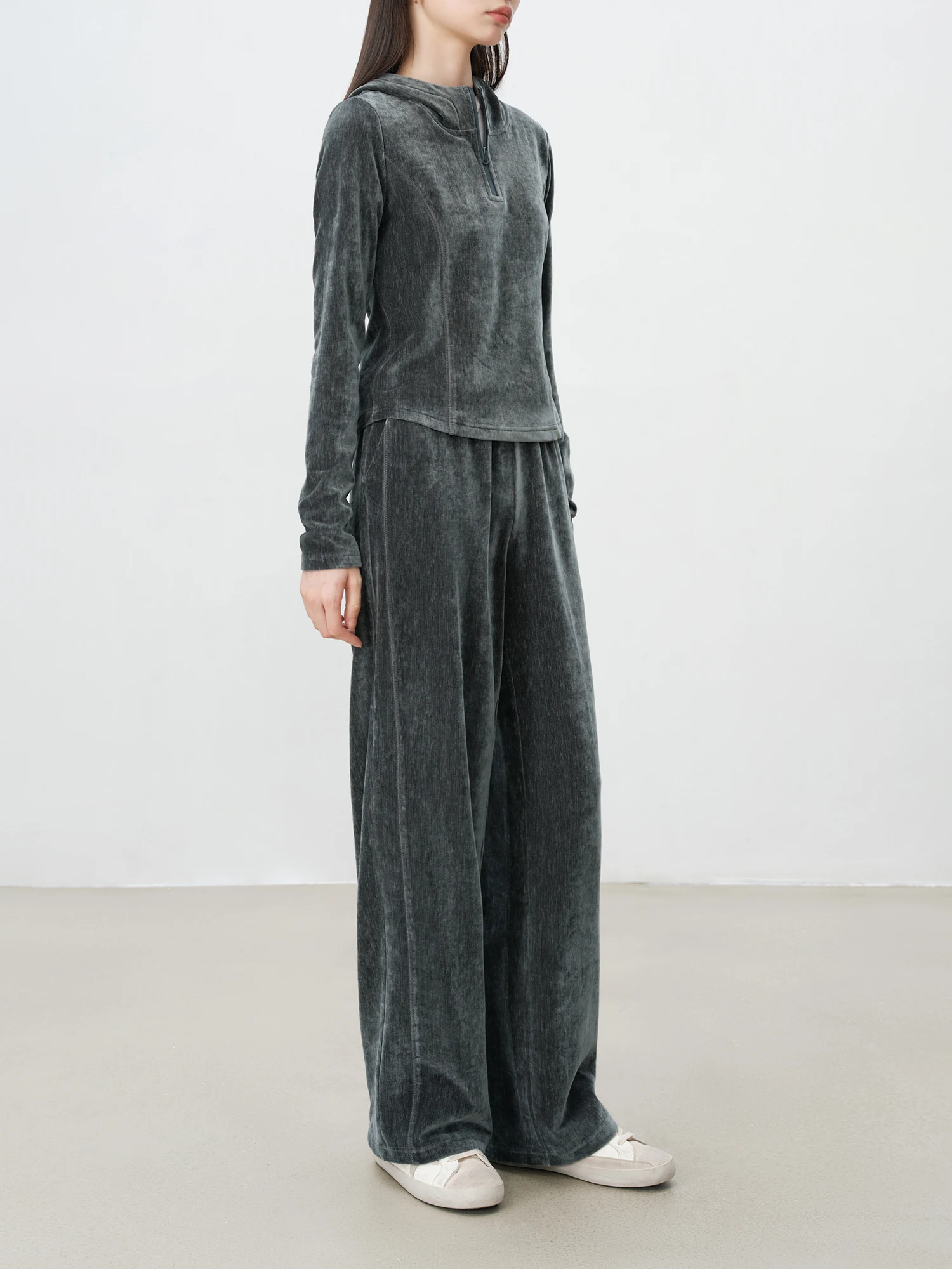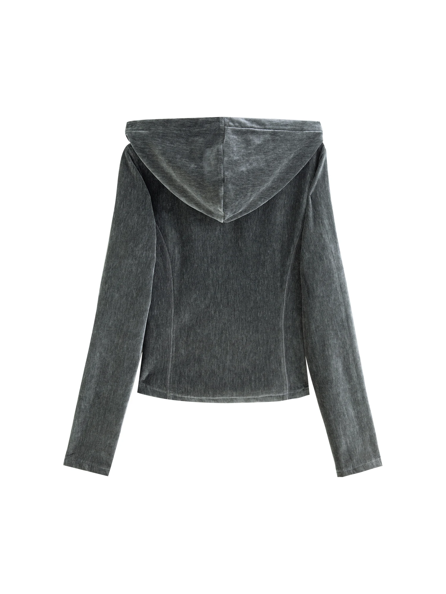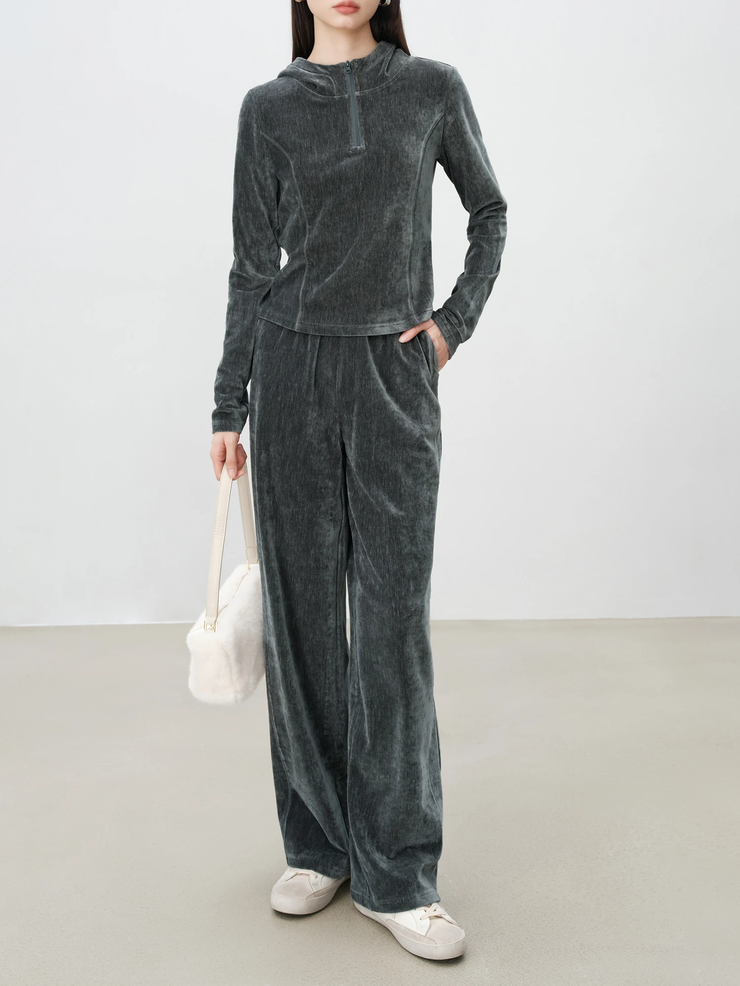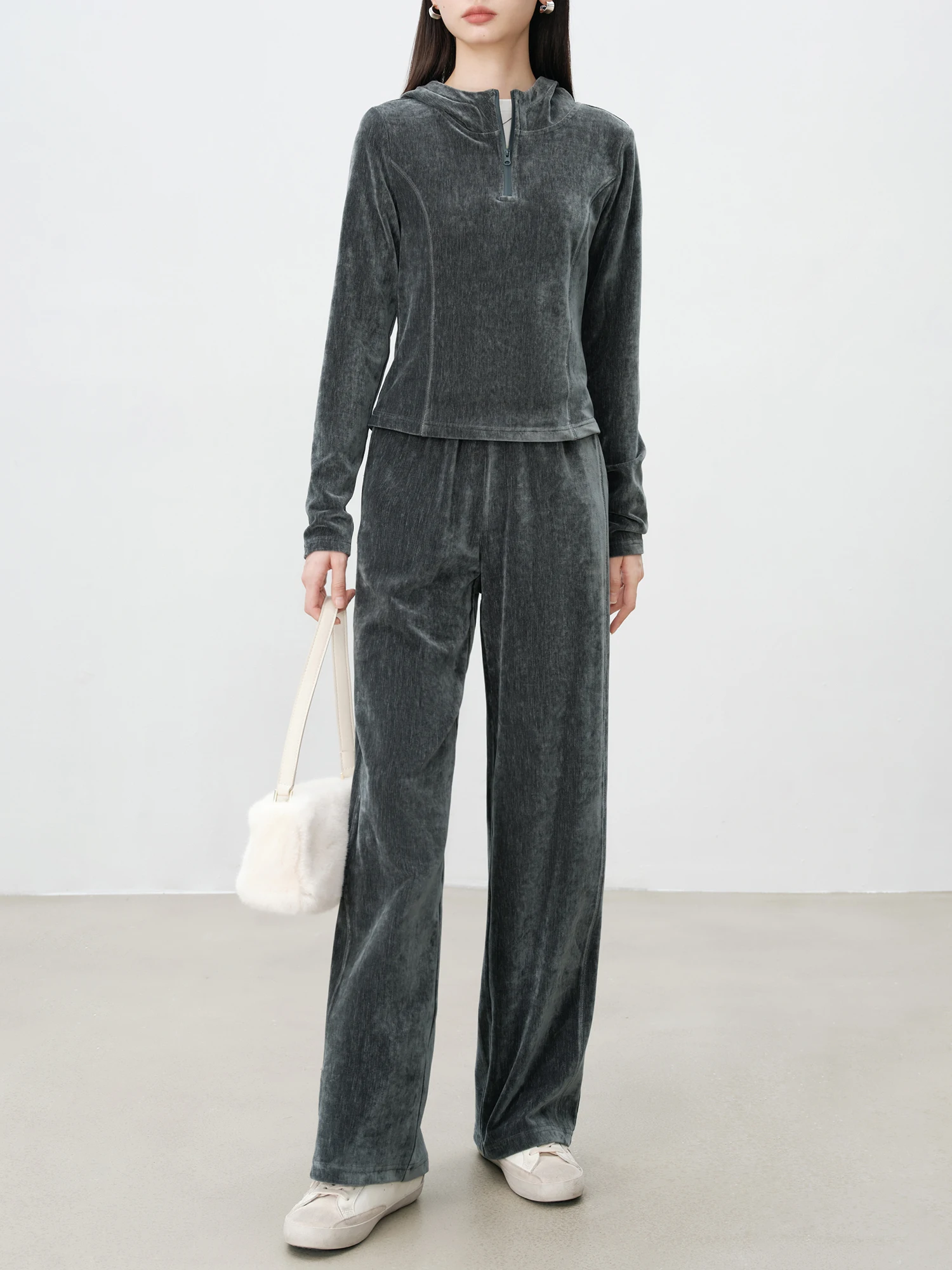 ZIQIAO Women Hoodies+Long Trousers Sets Zipper Placket Short Grey Sweatshirt Elastic Waist Winter Thick Pant 24ZQ94292+24ZQ94293