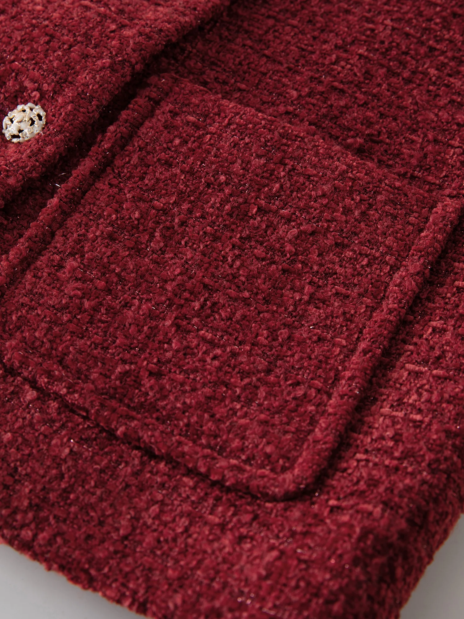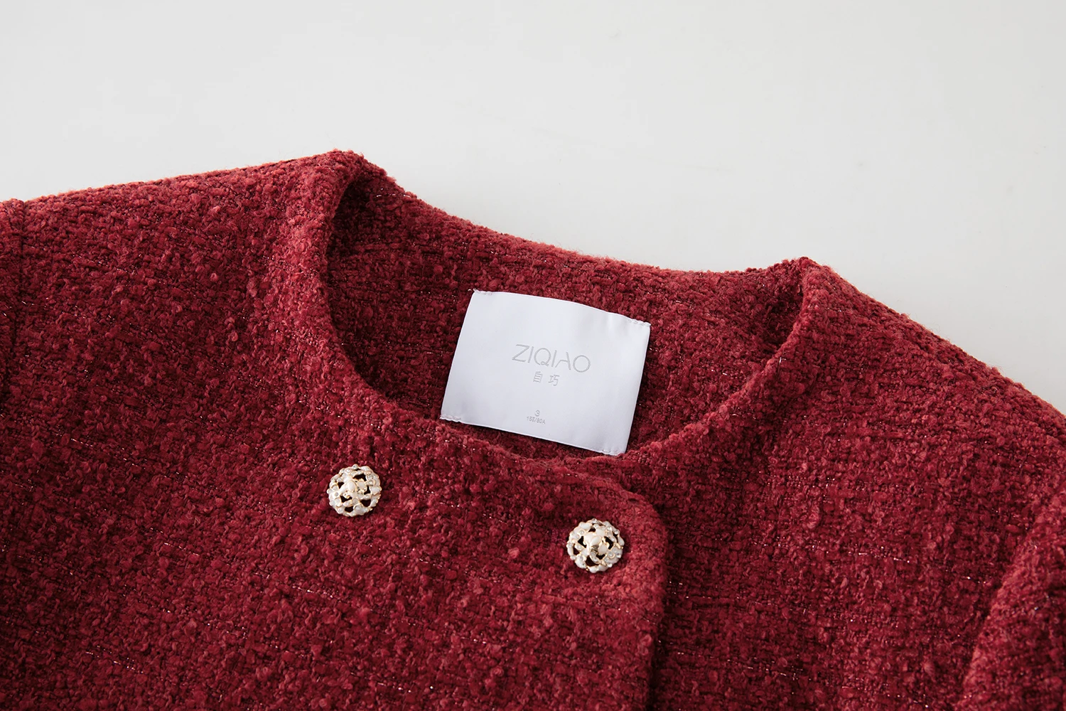 ZIQIAO Women Tweed Jackets 20.3% Wool Winter Office Lady Short Retro Red Wool Jacket Double Breasted 800G Thick Coats 24ZQ94300